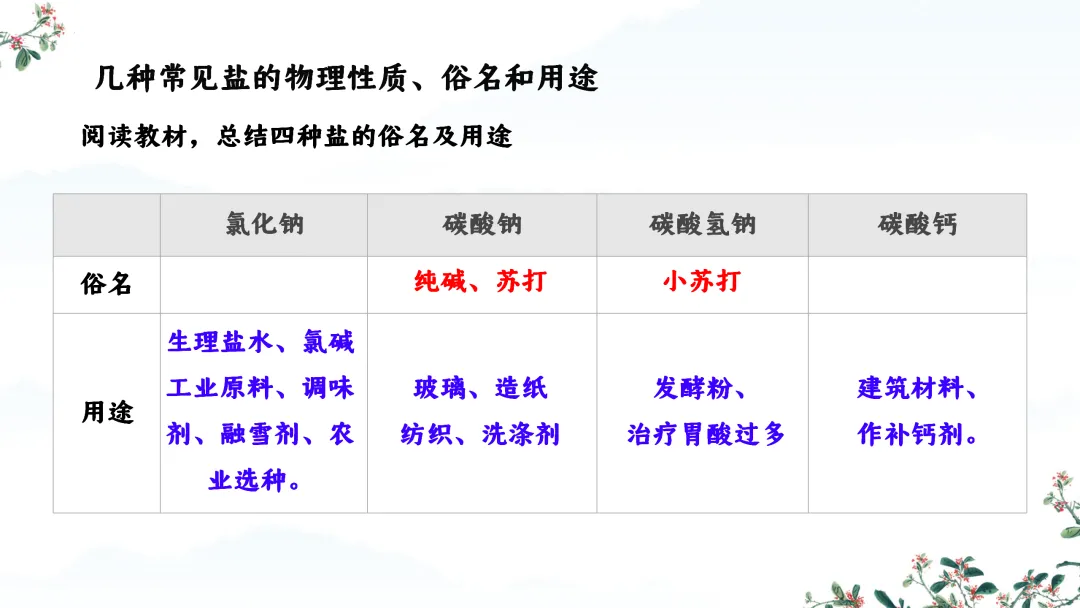 F776 项目式学习 优质课资源 初中化学 第十单元 常见的酸、碱、盐《课题3 常见的盐 第1课时 几种常见的盐》课件PPT+教学设计Word