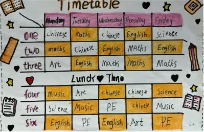 星期几(英文)活动名称(英文)一张小图画或照片一句感受(英文)