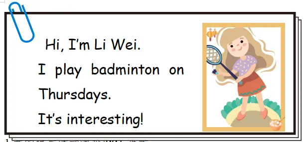 Hello! We are Group ___. On Mondays, three of us learn badminton.Badminton is the most popular activity in our group.We think after-school activities make us happy. Thank you!