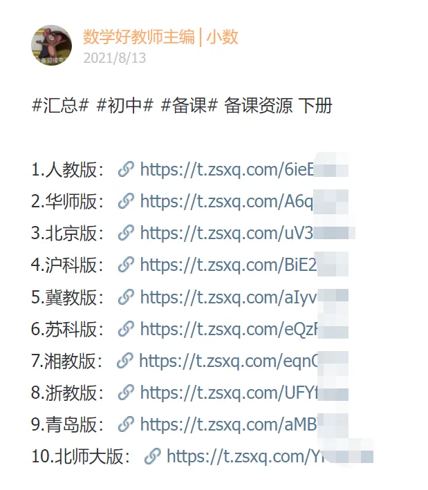 10个版本的备课资源链接在星球内已全部更新并进行了汇总: