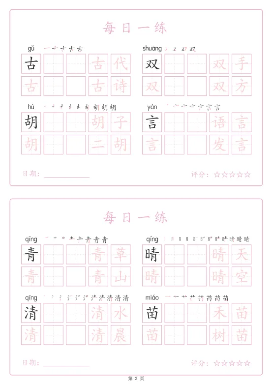 小学语文《生字表每日一练字帖》