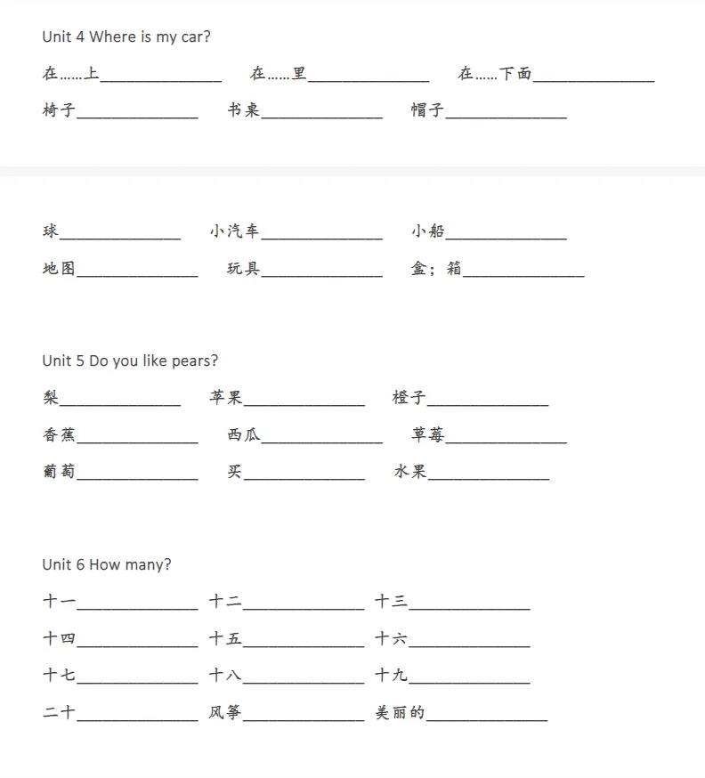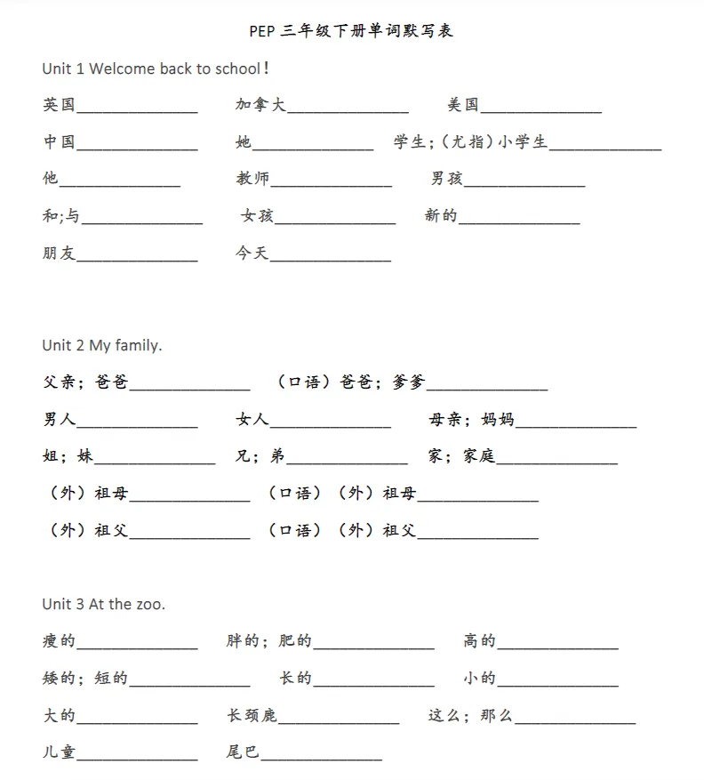 【小学资源】小学英语《单词默写表》3-6年级上下册