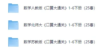 【小学资源】小学数学《口算大通关》1-6年级下册(2025春最新版,人教版/北师大/苏教版)一二三四五六年级全套网盘打包下载