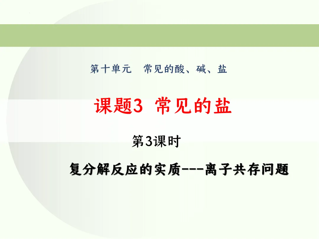 >F813 精品优质课资源 初中化学 第十单元 常见的酸、碱、盐《课题3 常见的盐 复分解反应的实质---离子共存问题》课件PPT+教学设计Word