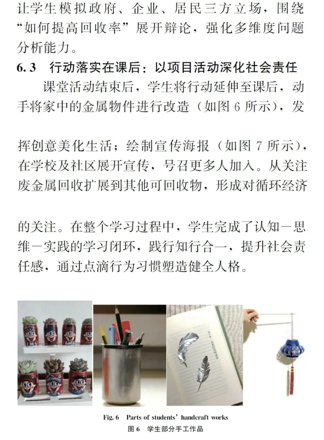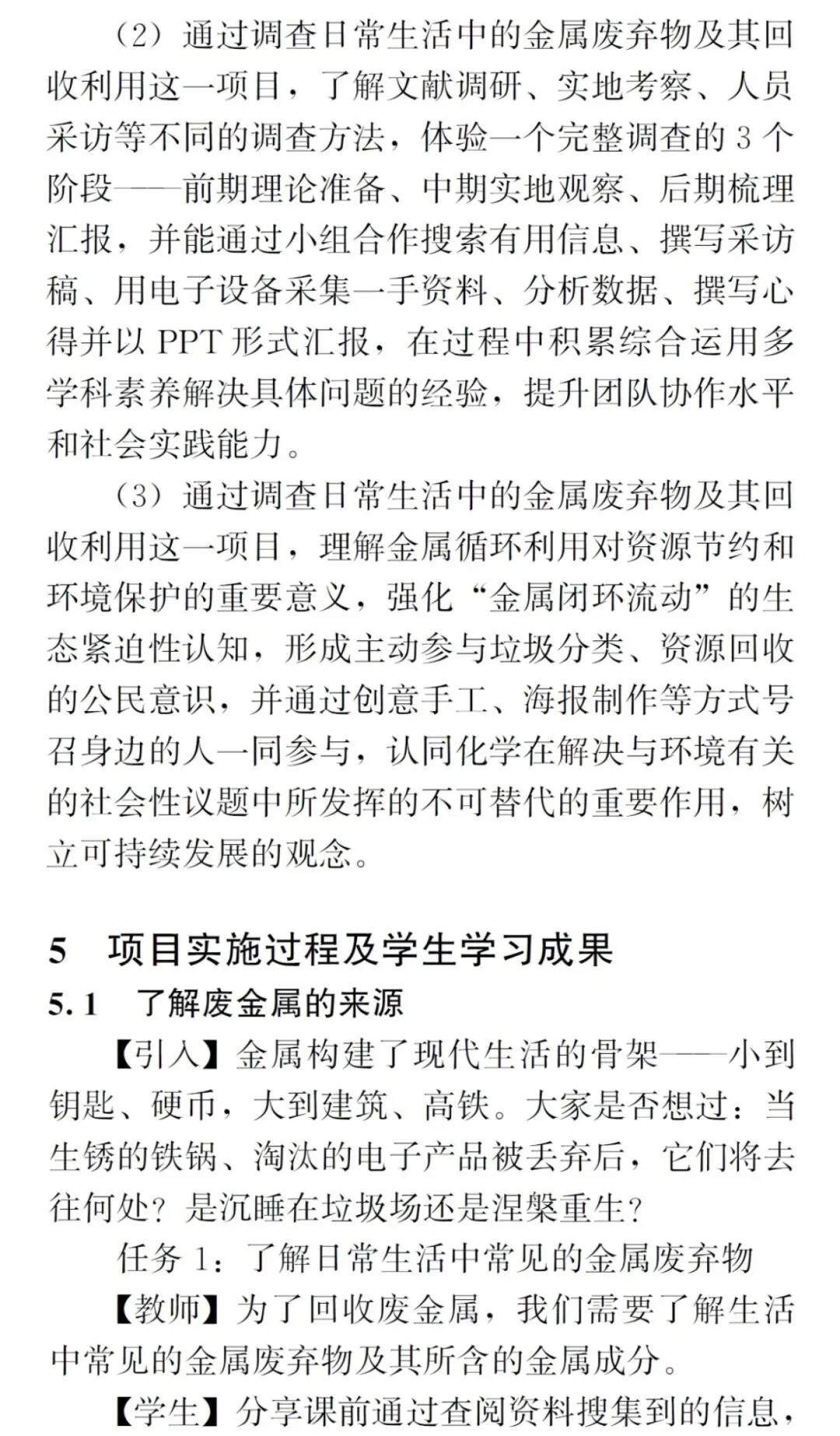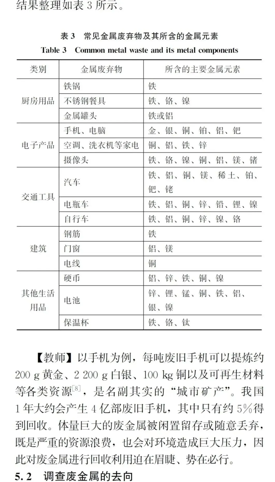 林丹.初中化学跨学科实践活动项目式教学——调查日常生活中的金属废弃物及其回收利用[J].化学教育(中英文),2026,47(05):30-38.