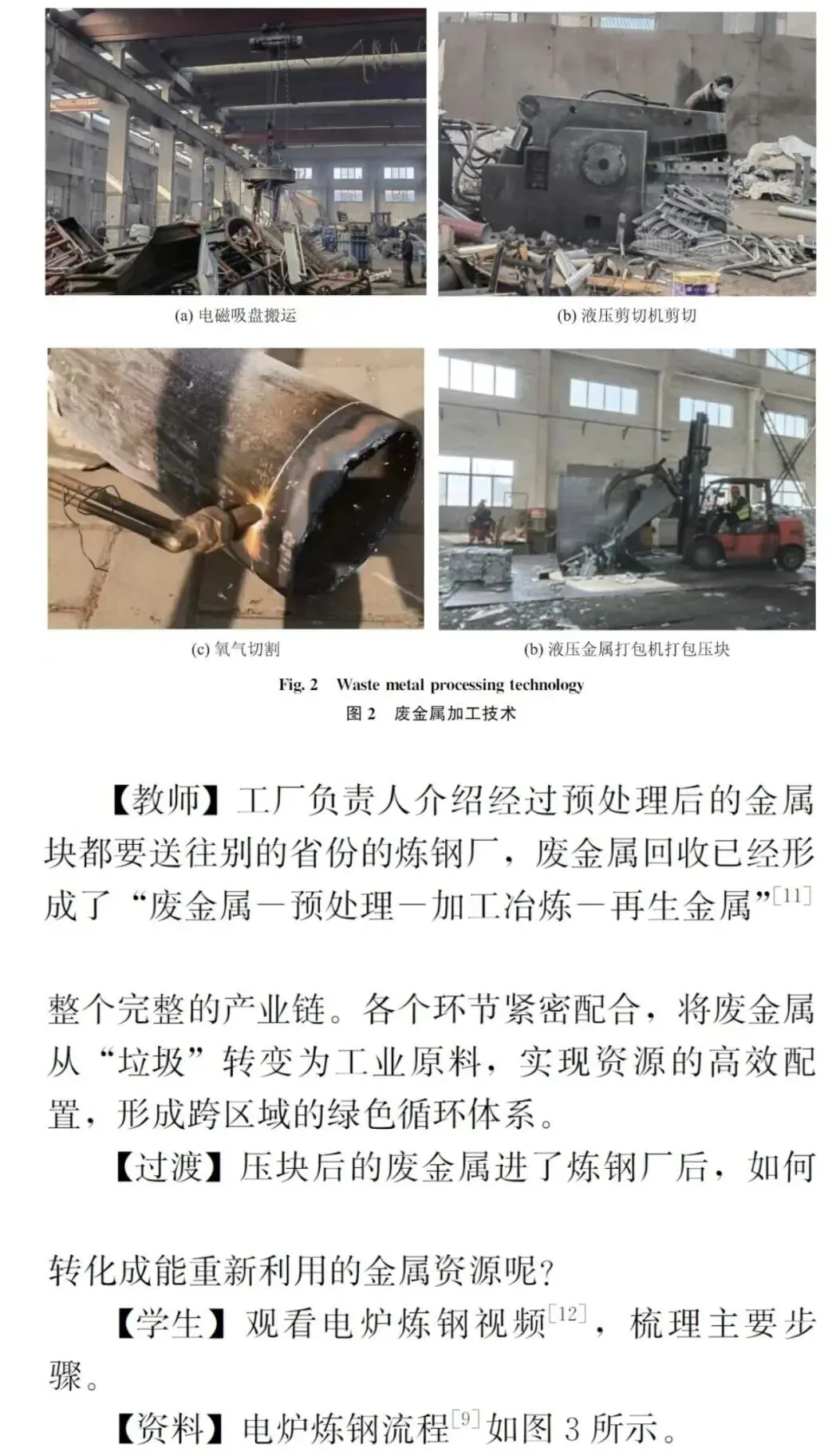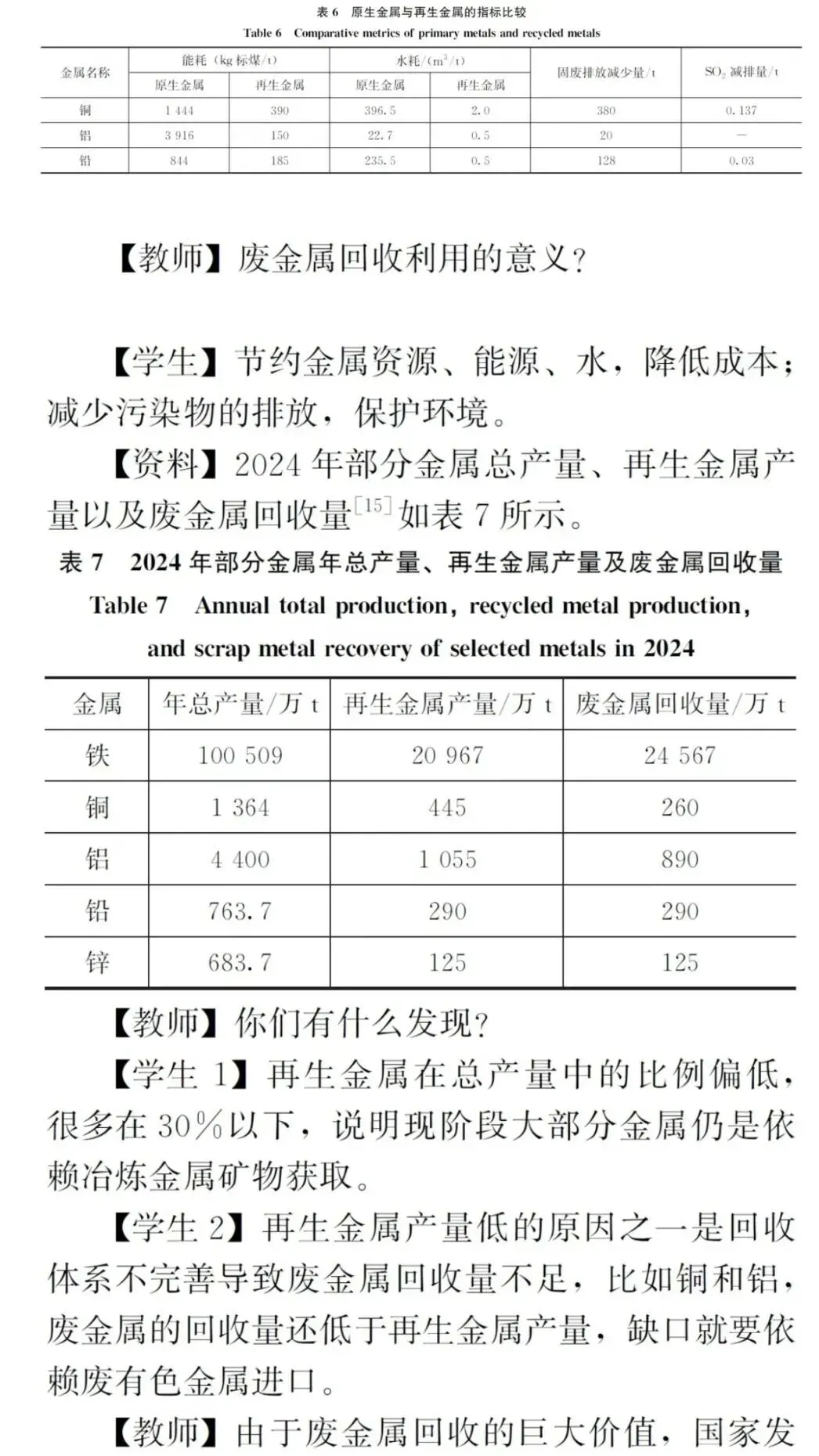 本文是沪教版九年级化学“金属资源综合利用”单元的跨学科实践教学设计,以“废金属回收”为核心主题。融合化学、物理、语文、道法等多学科知识,通过文献调研、实地走访、企业研学等实践活动,引导学生探究废金属来源、回收流程与电炉炼钢原理,对比原生与再生金属的能耗差异,感悟循环经济价值。配套完整教学目标、实施流程、反思改进方案,以及学生手工作品、宣传海报等成果案例,既落实化学核心素养,又培养学生社会调研、团队协作与环保责任意识,为初中化学跨学科项目式教学提供可落地、可复制的完整范本。