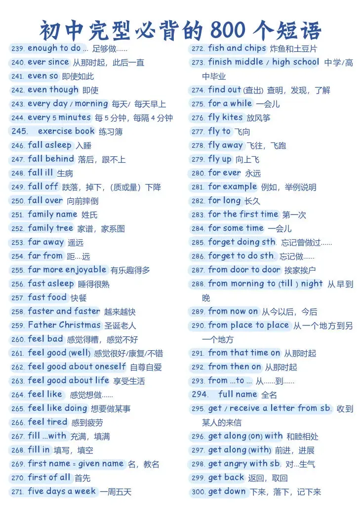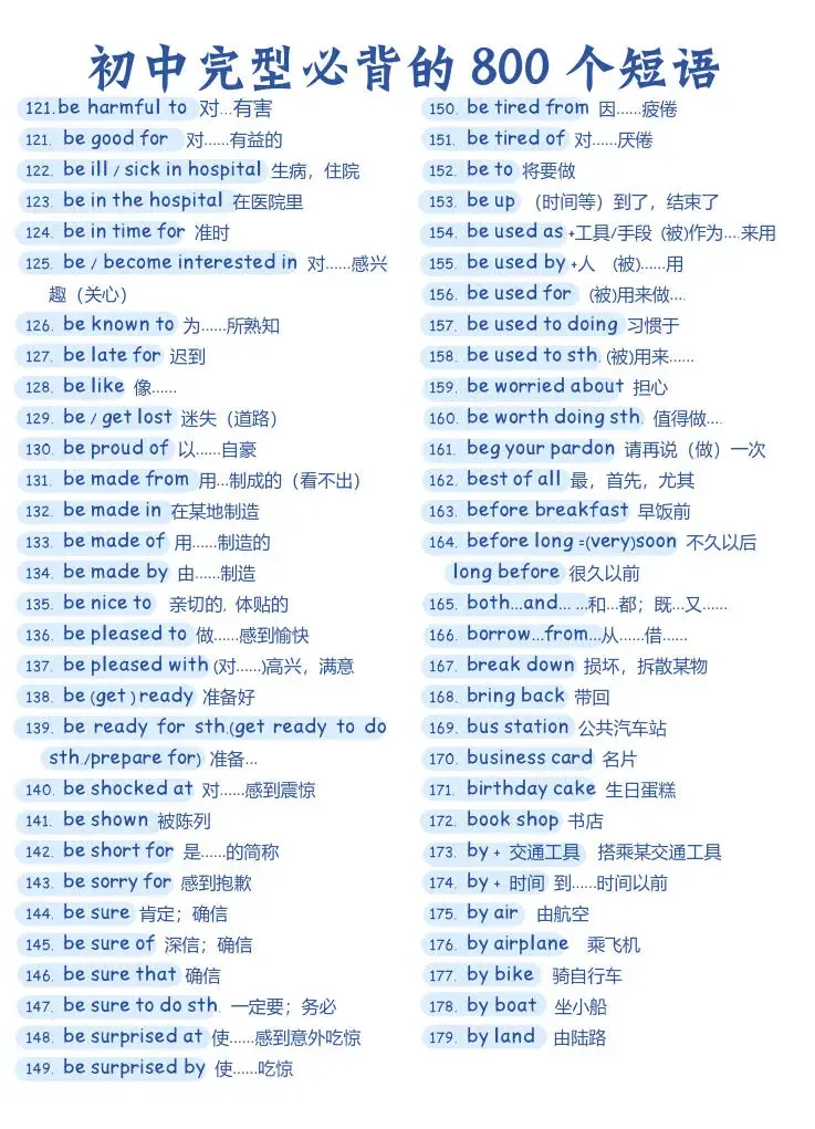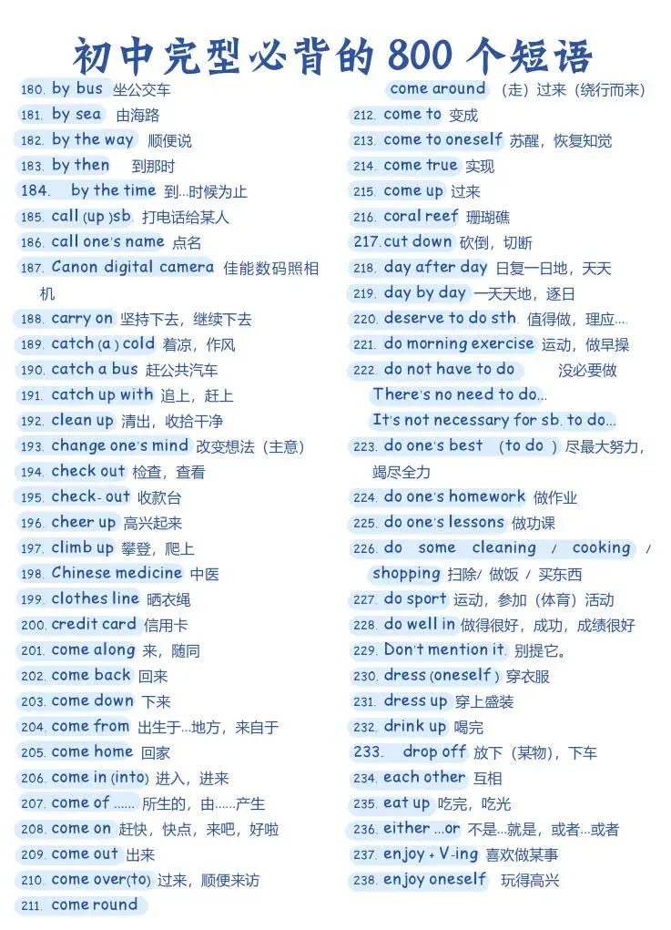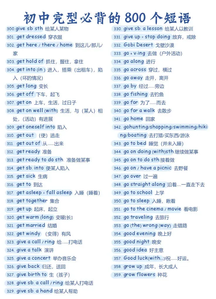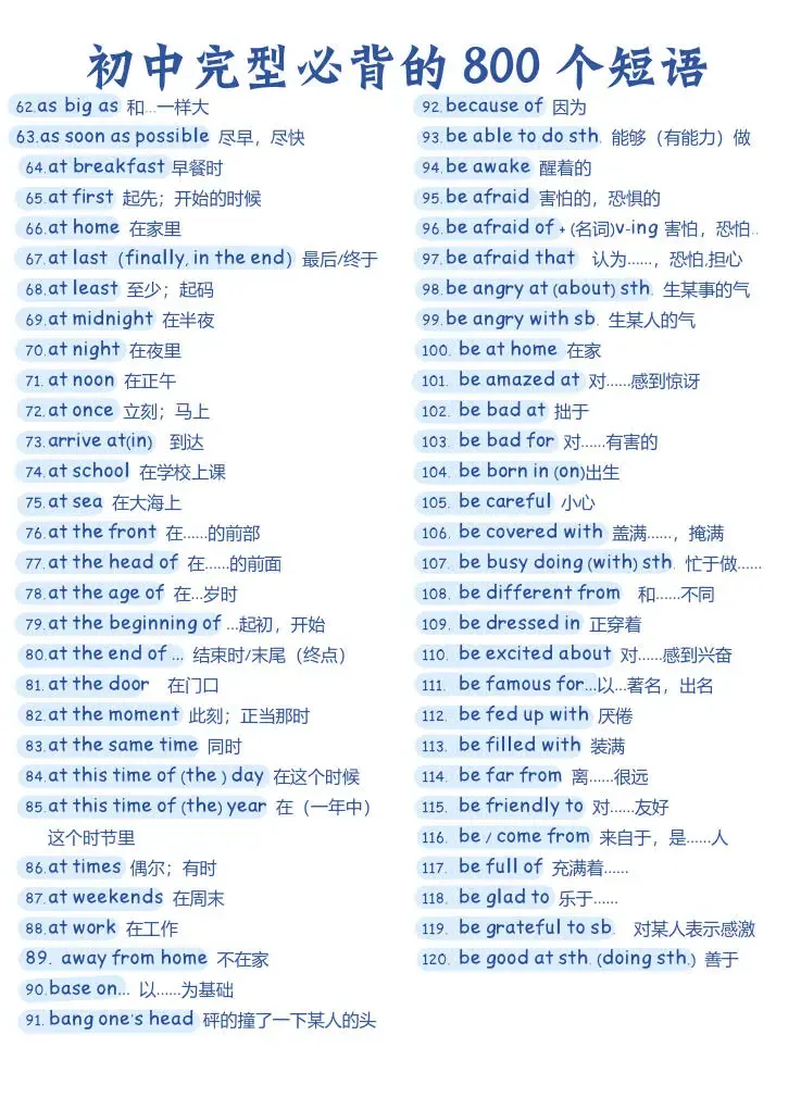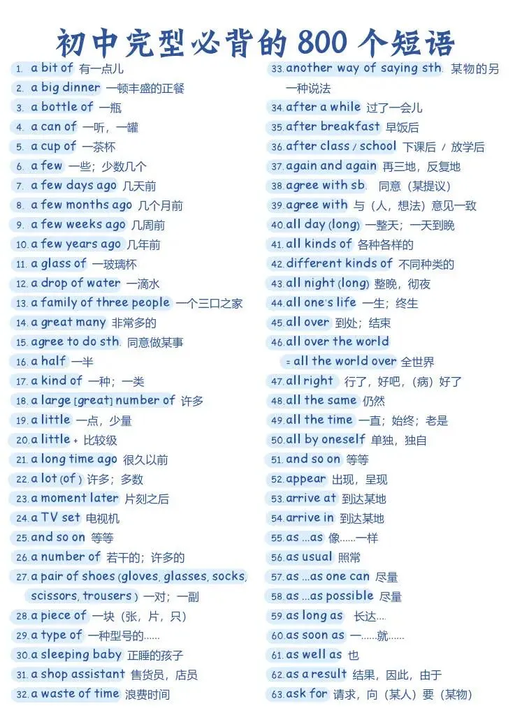 今天安安妈整理出800组英语短语,背熟了,不仅可以增加我们英语知识储备量,还可以在考试中稳稳拿分。
