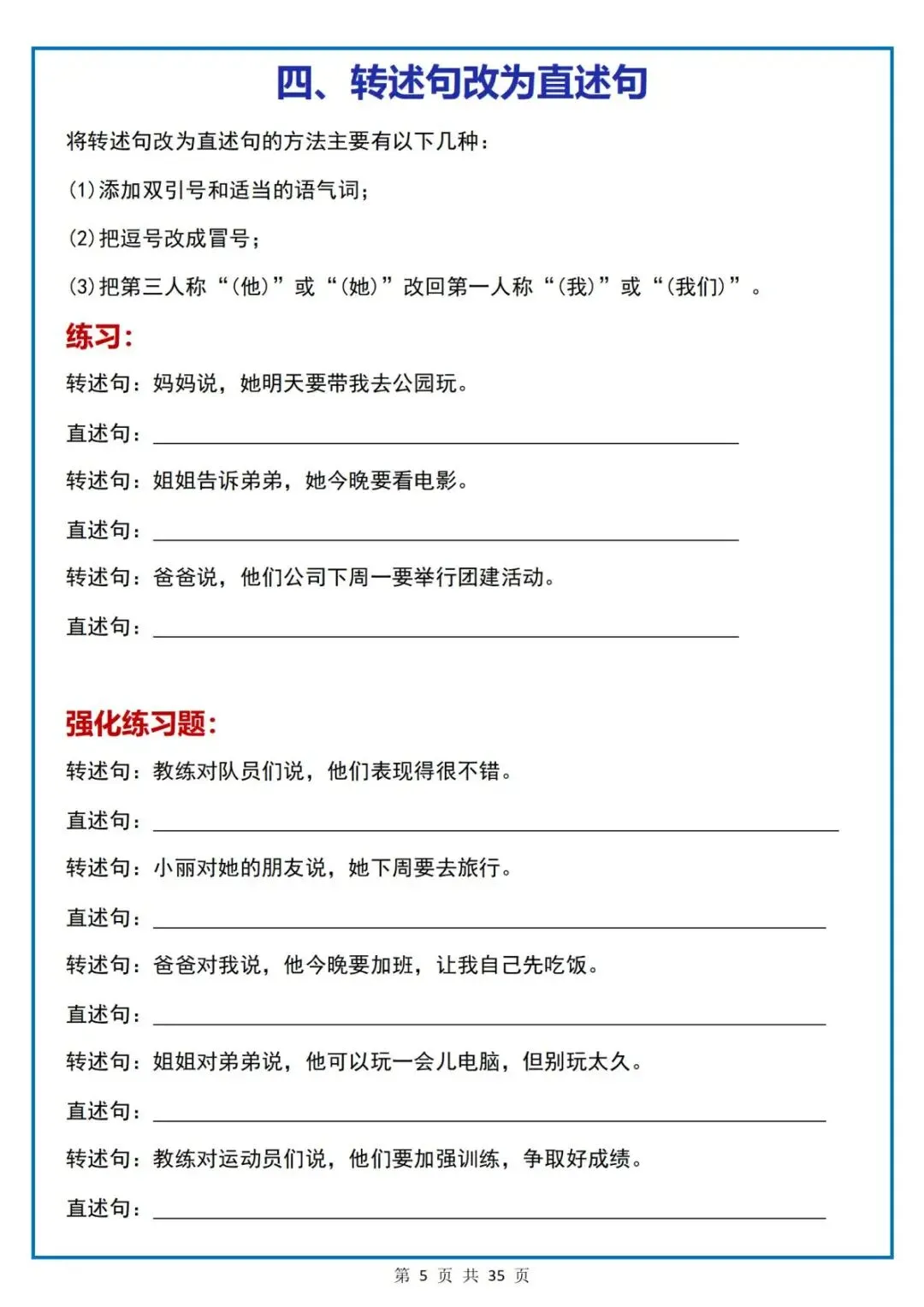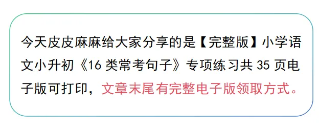 >资源分享|小学语文小升初《16类常考句子》专项练习电子版可打印
