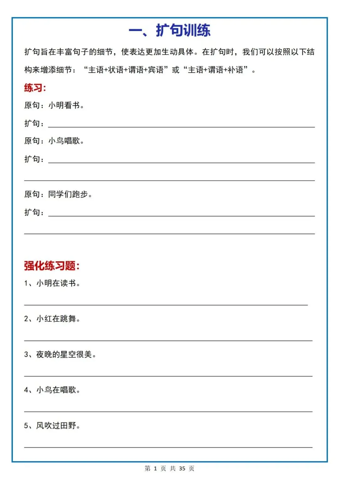 资源分享|小学语文小升初《16类常考句子》专项练习电子版可打印
