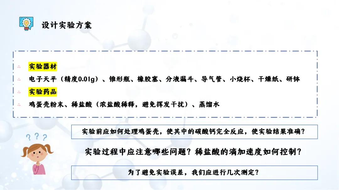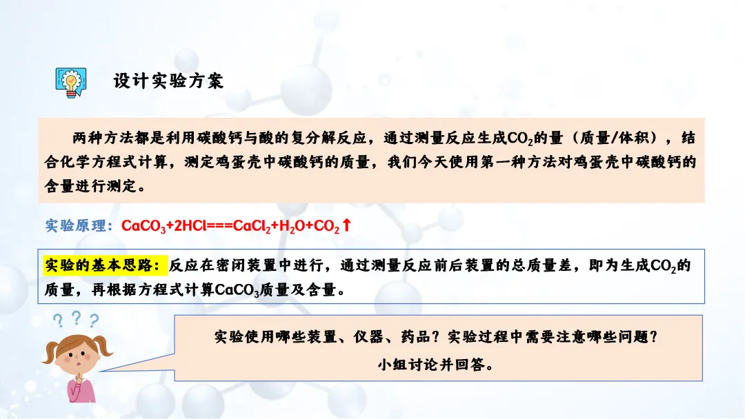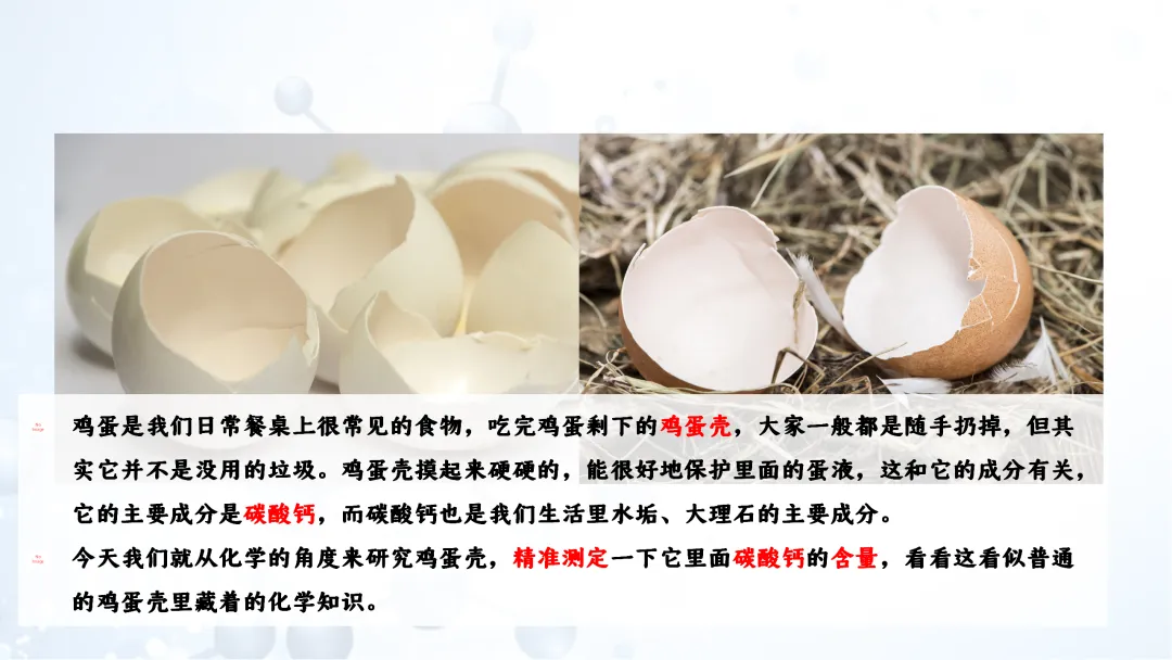 >F674 精品优质课资源 初中化学 《实验活动 : 测定鸡蛋壳中碳酸钙的含量 》课件PPT+教学设计Word