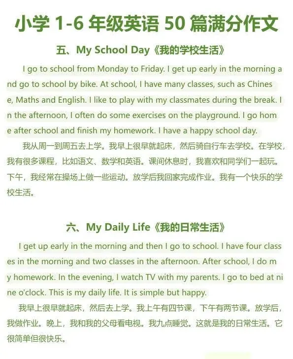 【免费资源】小学英语满分作文50篇:词汇句式全掌握