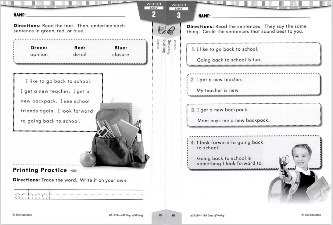 这套练习册出自美国知名教育出版商Shell Education旗下的明星产品《180 Days Of(180天学好...)系列》,在之后也会为大家带来这个系列其他科目(如阅读、语法、数学等等)的资料。