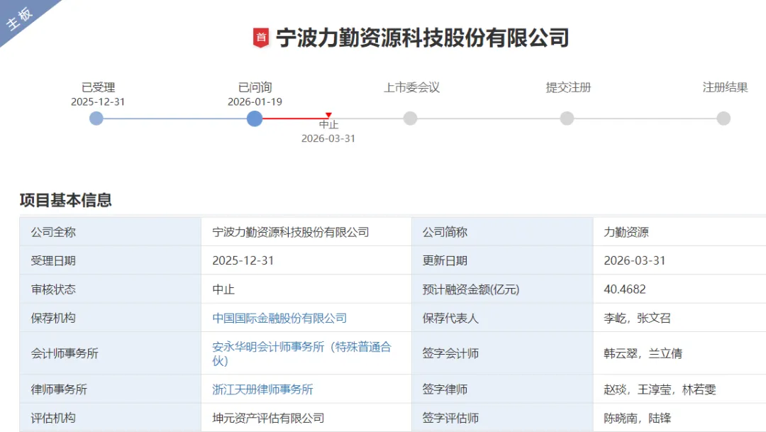 港股公司力勤资源(02245.HK)正冲刺深交所主板IPO,拟募资约40.47亿元。公司处于已问询状态,待披露回复。