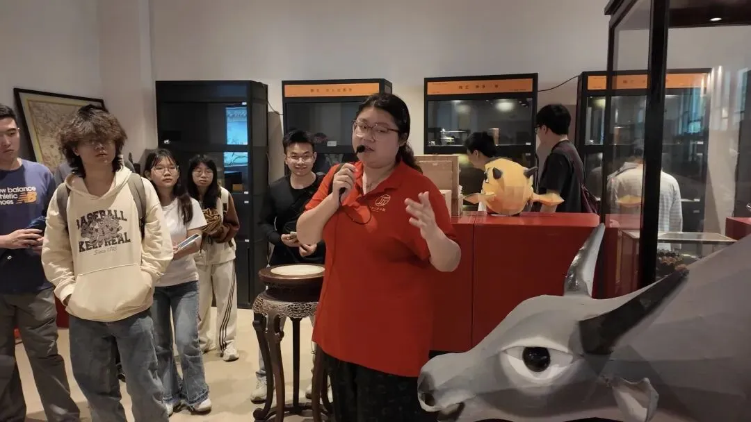活动伊始,基地负责人谭福星总经理围绕工匠文化、一村一品、非遗传承、手工技艺、特色农产品等内容为师生详细介绍了罗洞工匠小镇的产业基础、发展规划与特色建设,使同学们对地方文化资源有了系统认识。随后,在研学导师曾诗乔的带领下,大家分组走进小镇特色场馆,依次参观了茶工坊、红木馆、奇石馆、香云纱等展区,沉浸式感受传统工艺与非遗文化的独特魅力。