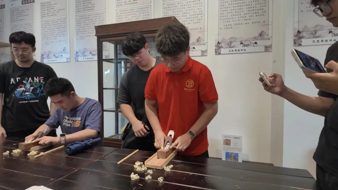 在实践体验环节,同学们积极参与拓印、木工等手工制作,在实践中体会精益求精的工匠精神。大家认真聆听、细致观察、主动提问,通过实地采访、现场记录、小组研讨等方式,收集整理地方文化教育资源。下午,各小组围绕本组拟定的小学综合实践活动驱动性问题,开展针对性实地调研与素材搜集,将专业学习与实践调研紧密结合。