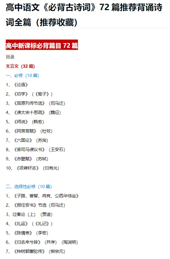 今天要分享的资源(链接在文末)是:高中语文必背古诗词72篇