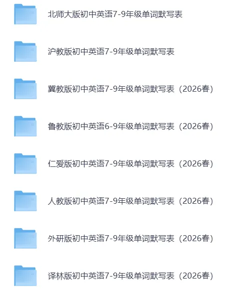 今天要分享的资源(链接在文末)是:初中英语单词默写表(多版本合集)