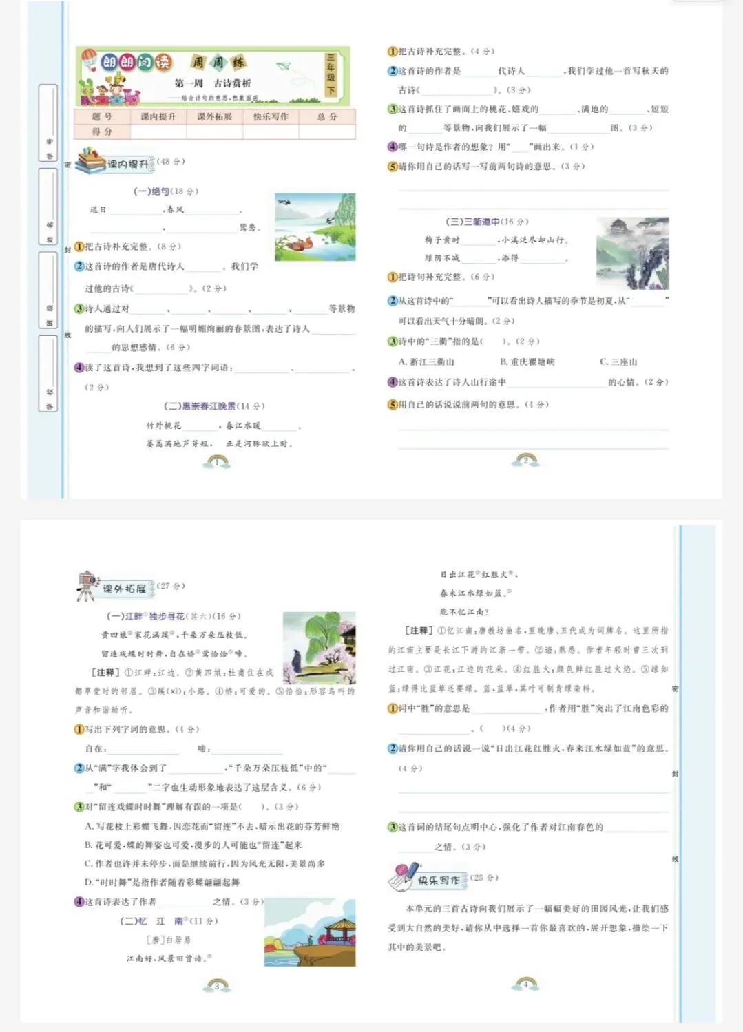 ✅ 包含课内阅读、课外拓展、快乐写作三大模块