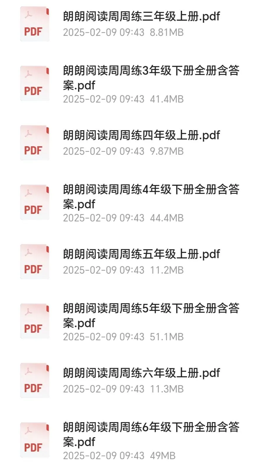 1-6年级《朗朗阅读周周练》全册,阅读专项练习。