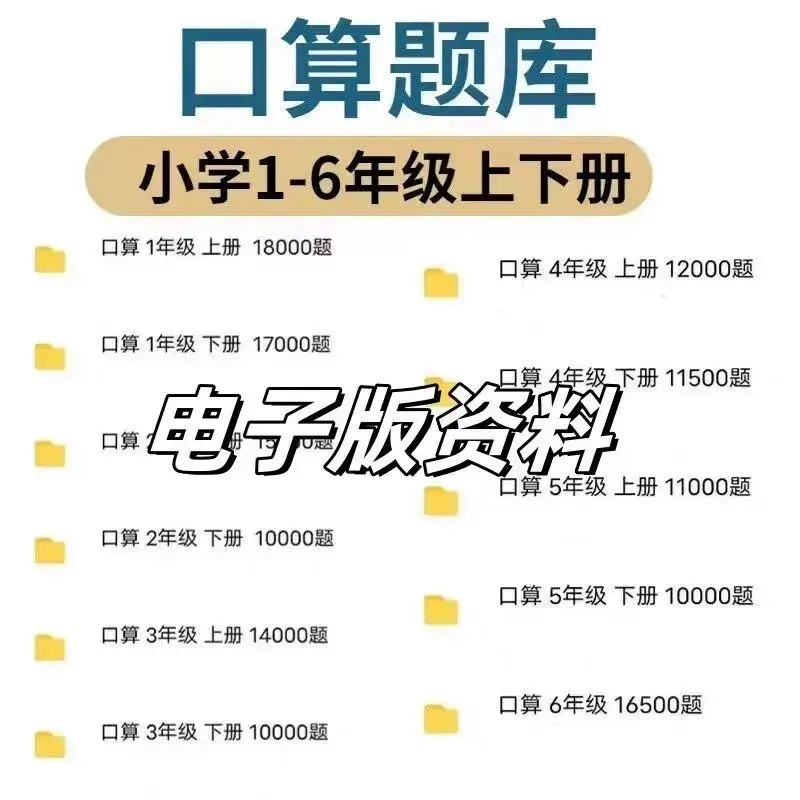 小学数学口算专项练习标价发一二三四五六年级上下册速算习题试卷电子版资料获取说明资料获取请添加小编微信:fyl51368;所有资料会收取5-9.9元资料整理费。内容声明本微信公众账号分享的资源均通过网络等公共合法渠道获得,仅供试用!版权归原作者或原出版机构所有,本资源为电子载体,分享仅限于家庭使用与交流学习心得、参考和辅助购买决策,不得以任何理由在商业行为中使用。如有侵权,请及时联系删除。